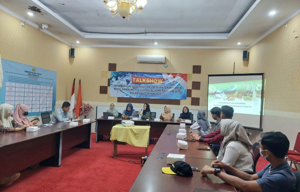 SERANG, Skemarubrik.com | – Dalam upaya memperkuat pelaksanaan Program Makan Bergizi Gratis (MBG) dan mendukung visi pemerintah membangun Generasi Emas 2045, SPPG Polda Banten, Dinas Kesehatan (Dinkes) Kota Serang bersama Dinas Pendidikan dan Kebudayaan (Dindikbud) Kota Serang menggelar Talkshow/ Diskusi Bersama.