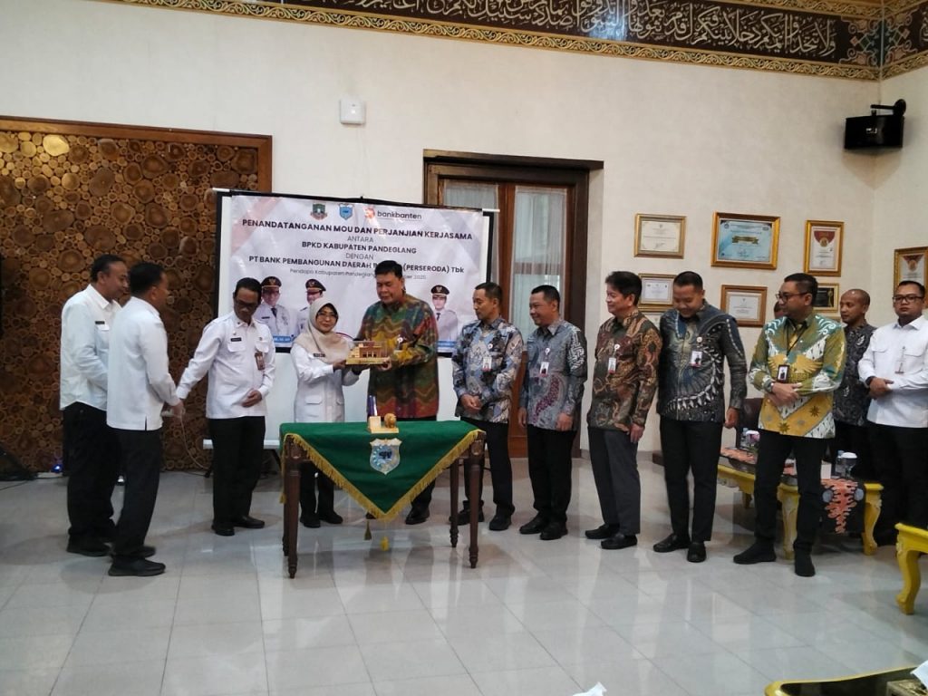Penandatanganan Memorandum of Understanding (MoU) dilakukan oleh Bupati Pandeglang, Dewi Setiani, dan penandatanganan Perjanjian Kerja Sama (PKS) dilakukan oleh Kepala BPKAD Kabupaten Pandeglang, Yahya Gunawan Kasbin, bersama Direktur Utama Bank Banten, Muhammad Busthami. Kegiatan tersebut turut disaksikan oleh Asisten Daerah (Asda) I Kabupaten Pandeglang, Doni Hermawan, serta para Kepala Organisasi Perangkat Daerah (OPD) di lingkungan Pemerintah Kabupaten Pandeglang.