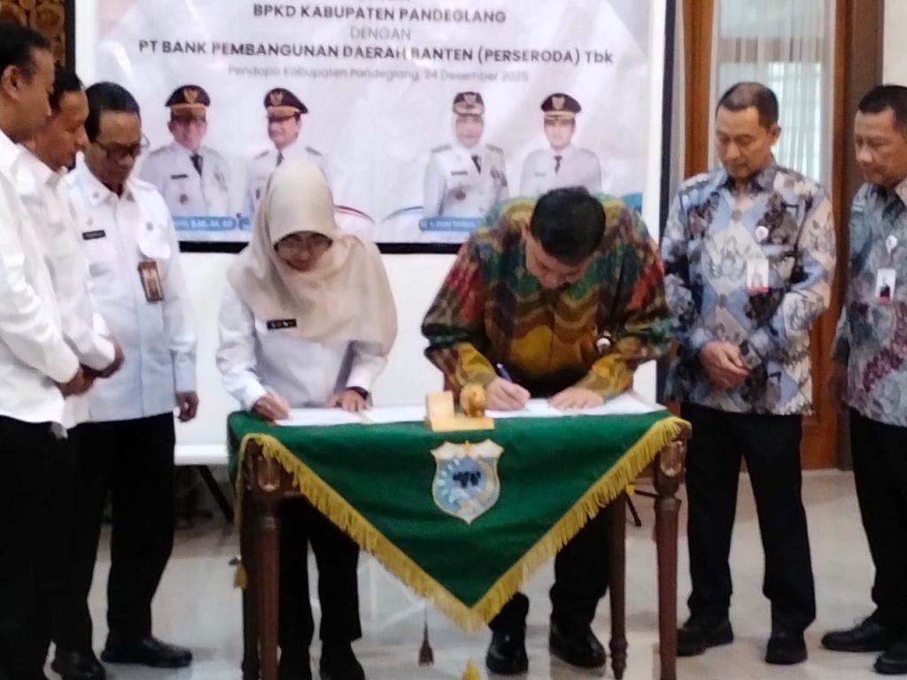 Hal tersebut ditandai dengan penandatanganan Memorandum of Understanding (MoU) yang dilanjutkan dengan Perjanjian Kerja Sama (PKS) pengelolaan RKUD antara Bank Banten dan Pemkab Pandeglang. Kegiatan ini berlangsung di Gedung Pendopo Pandeglang, Rabu (24/12/2025).