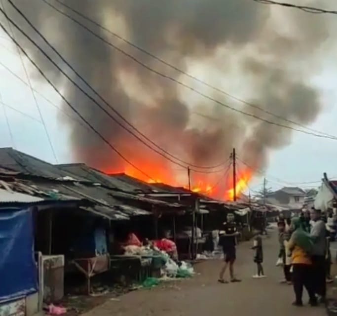 Deretan kios yang terbakar terdiri dari pedagang sembako hingga perabotan rumah tangga. Saat api membesar, disampaikan oleh beberapa warga pemilk kios tersebut terjadi sekitar pukul 17.30 WIB pada Minggu, (22/2/2026).