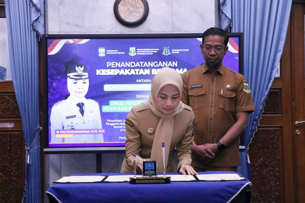 Penandatanganan dilakukan oleh Bupati Serang Ratu Rachmatuzakiyah dan Kepala DPUPR Banten Arlan Marzan. Dilanjutkan Penandatangan Kerja Sama atau PKS antaran Kepala Dinas Ketahanan Pangan dan Pertanian (DKPP) Suhardjo, Kepala DPUPR Kabupaten Serang Mochammad Ronny Natadipraja dan Kepala DPUR Provinsi Banten, Arlan Marzan disaksikan Wakil Kepala Kejaksaan Tinggi (Wakajati) Banten Ardito Muwardi di Pendopo Bupati pada Selasa, 3 Februari 2026.
