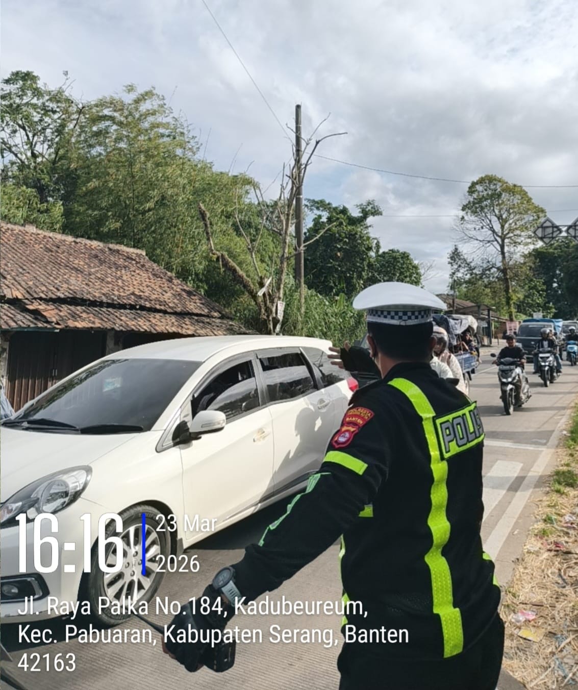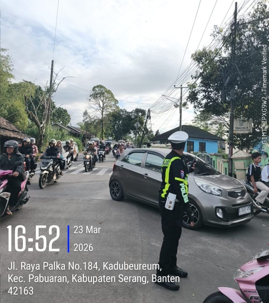 Serang, SkemaRubrik.com | — Personel Pos Pengamanan Operasi Ketupat 2026 dan Satuan Lalu Lintas Polresta Serang Kota melaksanakan rekayasa arus lalu lintas di jalur wisata Palima–Cinangka pada Senin (23/03/26) guna mengantisipasi kepadatan kendaraan menuju kawasan wisata pantai Anyer.