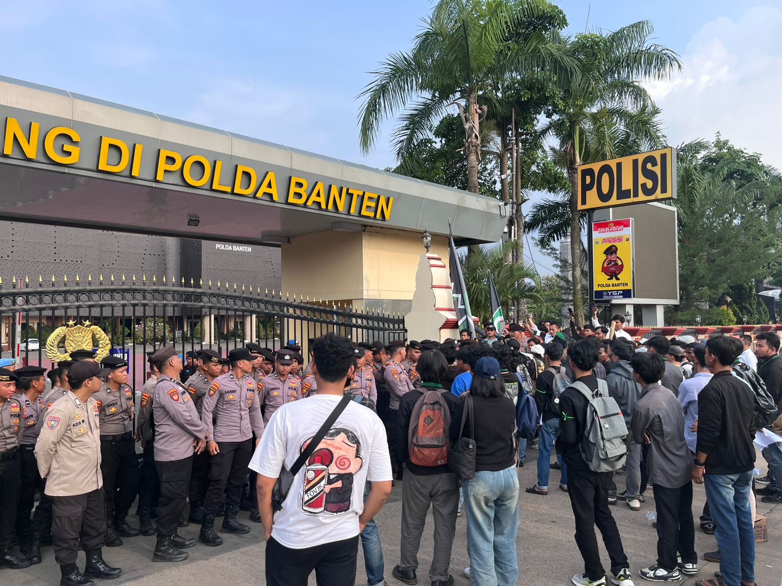 Sejak awal aksi dimulai, aparat dari Kepolisian Daerah Banten tampak melakukan pengawalan secara persuasif tanpa tindakan represif. Massa mahasiswa diberikan ruang yang cukup untuk menyampaikan aspirasi mereka secara terbuka. Bahkan, aparat kepolisian turut memastikan jalannya aksi tetap tertib serta tidak mengganggu aktivitas masyarakat di sekitar lokasi demonstrasi.