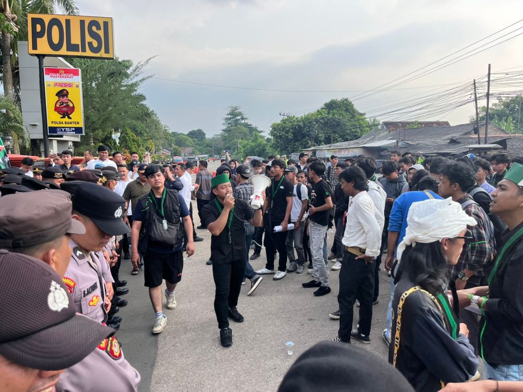 KOTA SERANG| SkemaRubrik.com — Aksi demonstrasi yang dilakukan oleh massa Himpunan Mahasiswa Islam (HMI) se-Banten yang tergabung dari HMI Cabang Serang, HMI Cabang Pandeglang dan HMI Cabang, Lebak di depan kantor Kepolisian Daerah Banten berlangsung dalam skema suasana yang tertib dan kondusif. Demonstrasi yang mengangkat sejumlah kritik terhadap dinamika penegakan hukum di daerah tersebut justru memperlihatkan satu hal penting: ruang demokrasi di Banten tetap terbuka dan dijaga dengan pendekatan yang humanis.